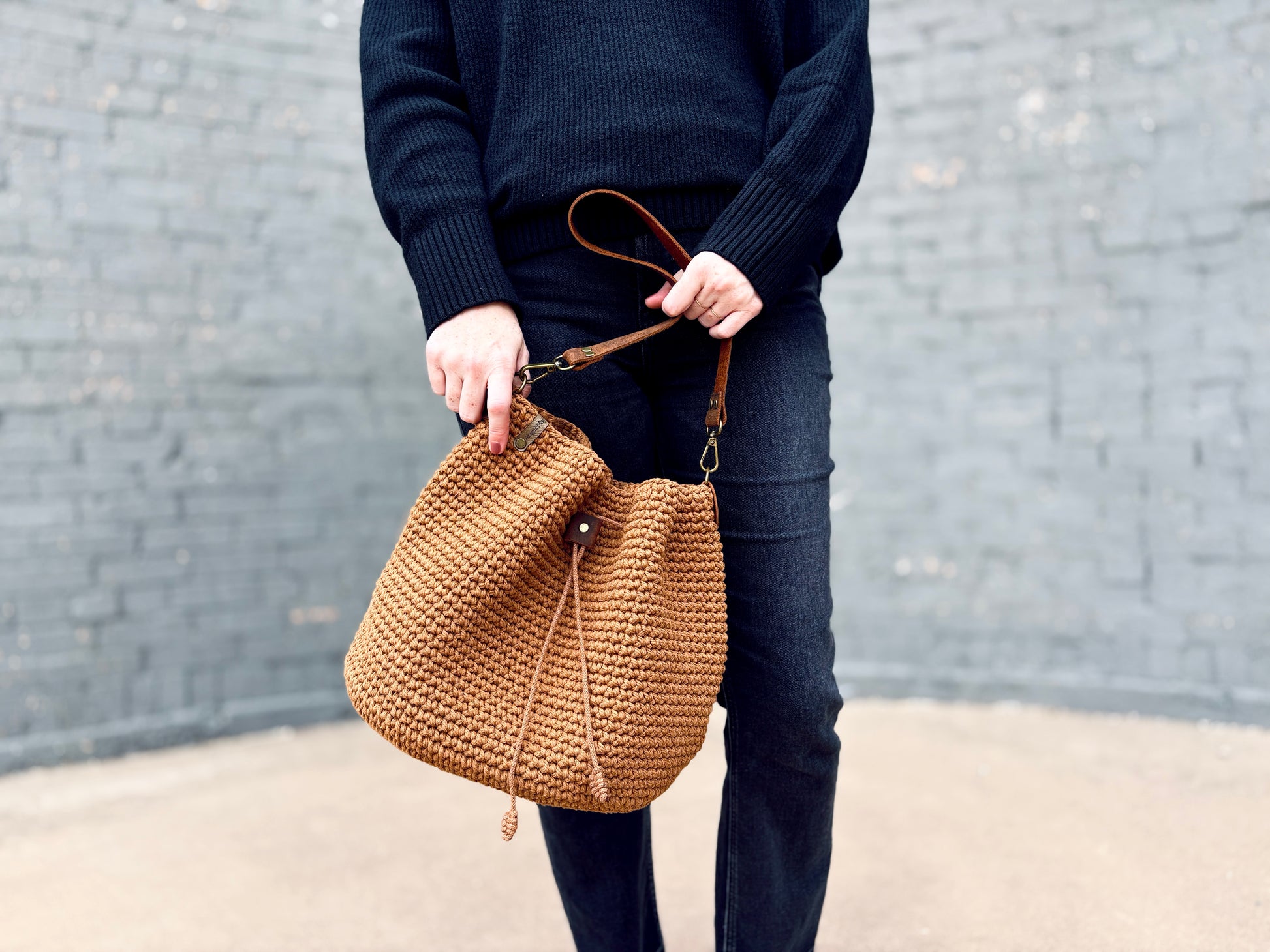 This big drawstring bucket bag is the perfect blend of casual and luxe.