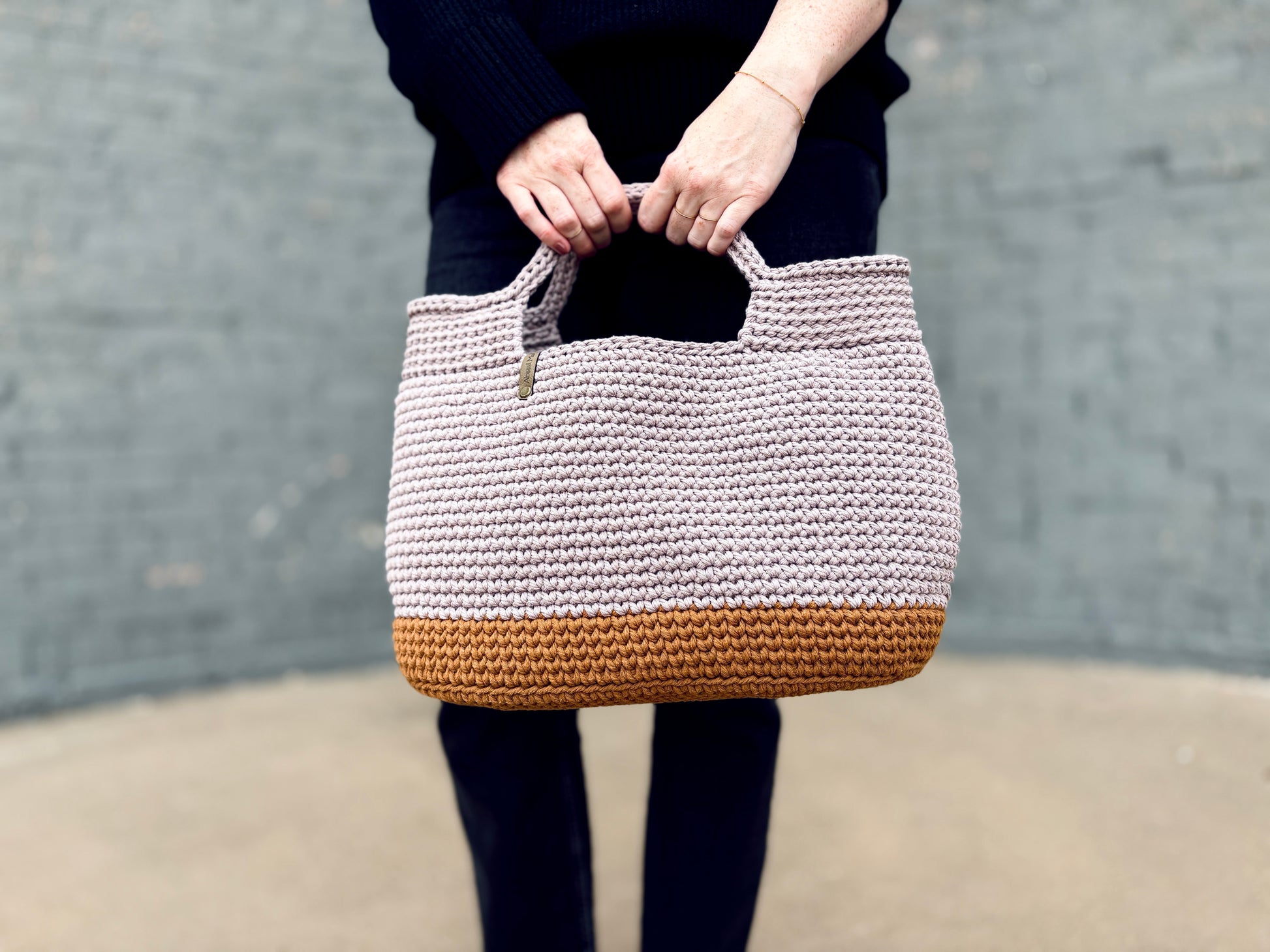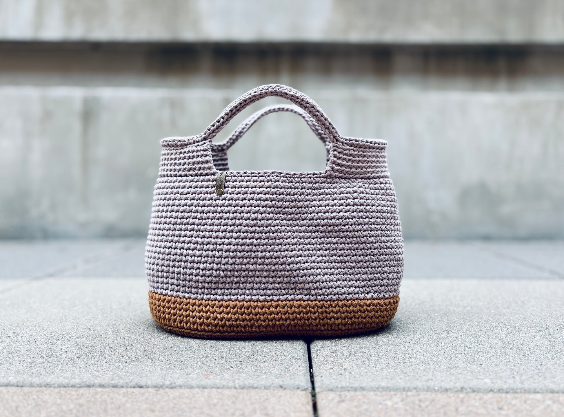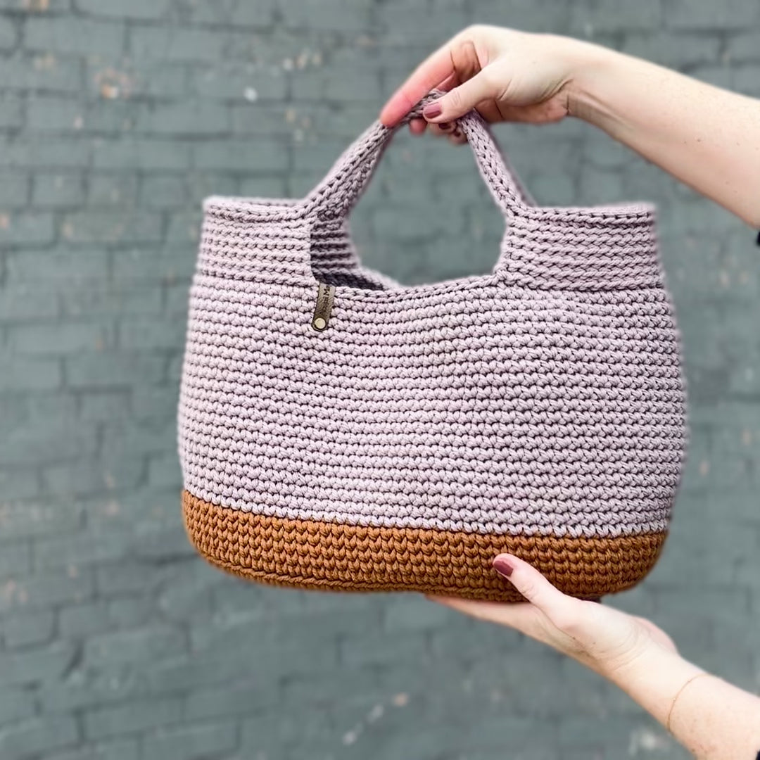 Crocheted from cotton cord. Features a stand-up base and roomy interior.
